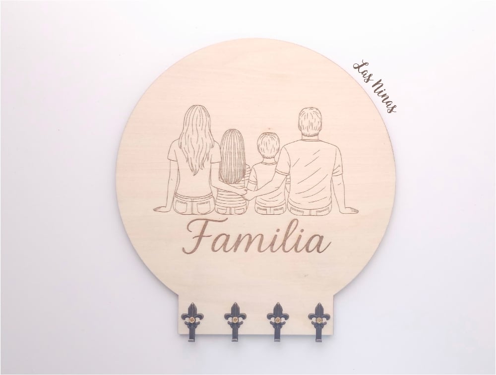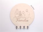 Cuelgallaves personalizado en madera laminada de 29,5 cm de diámetro con llaveros a juego aprox. 4.5cm con anilla de acero inox.