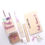 - Set de Escritura Completo: Incluye clips, regla de madera, sacapuntas y goma.